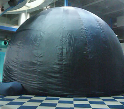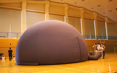 館内リニューアル期間中の代替プラネタリウム機材として、6mエアドームの短期・長期レンタル協力。近隣小学校への出張上映などに活用していただきました。
